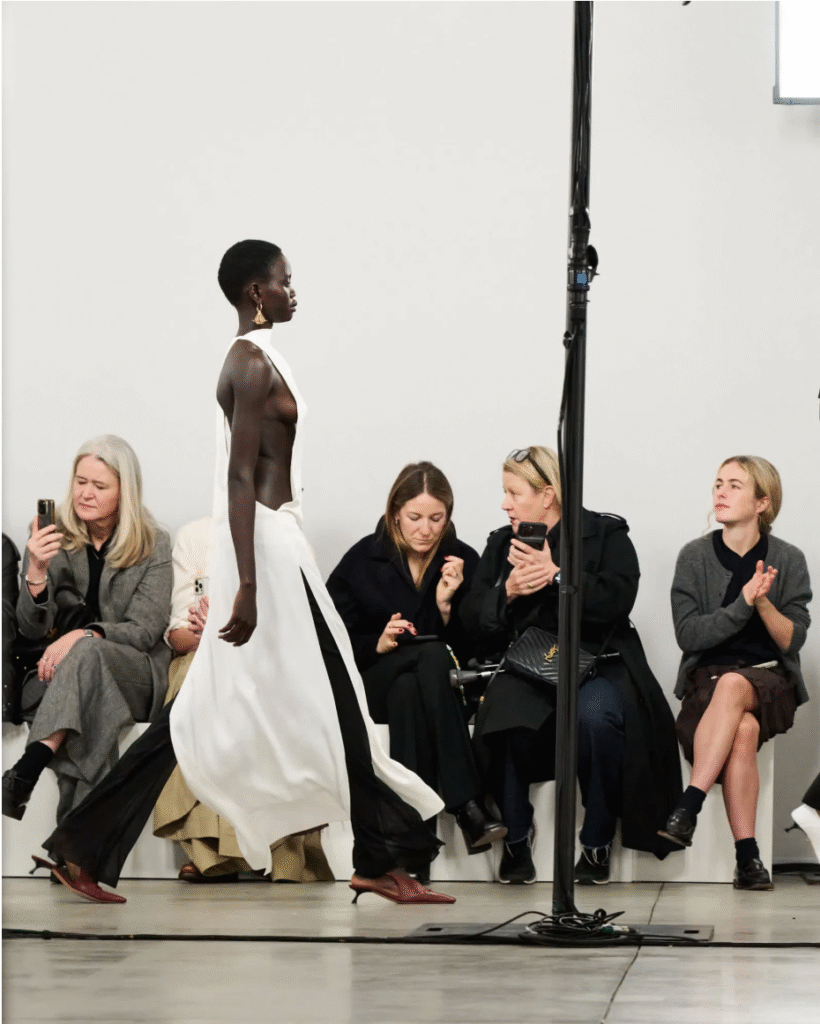 Sportmax’s Spring/Summer 2026 collection, themed “Lightness and Movement,” conveys a sense of and response to the fast-paced pace of modern life. Inspired by a deep observation of urban life, the collection emphasizes a blend of lightness, fluidity, and practicality, creating garments that combine a sense of fantasy and reality. Focusing on simple elegance, the collection utilizes layered translucent fabrics and floral motifs, using a unique painterly technique of lipstick and nail polish to create a play of light and shadow. The garments’ rigorous lines and precise cuts create a sense of breathability while also revealing a balanced sensuality, showcasing a perfect balance of architectural structural beauty and dynamic lightness.