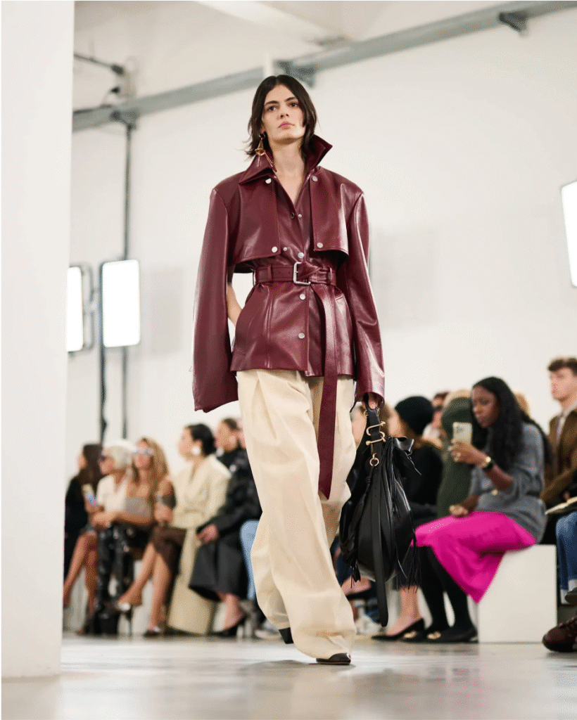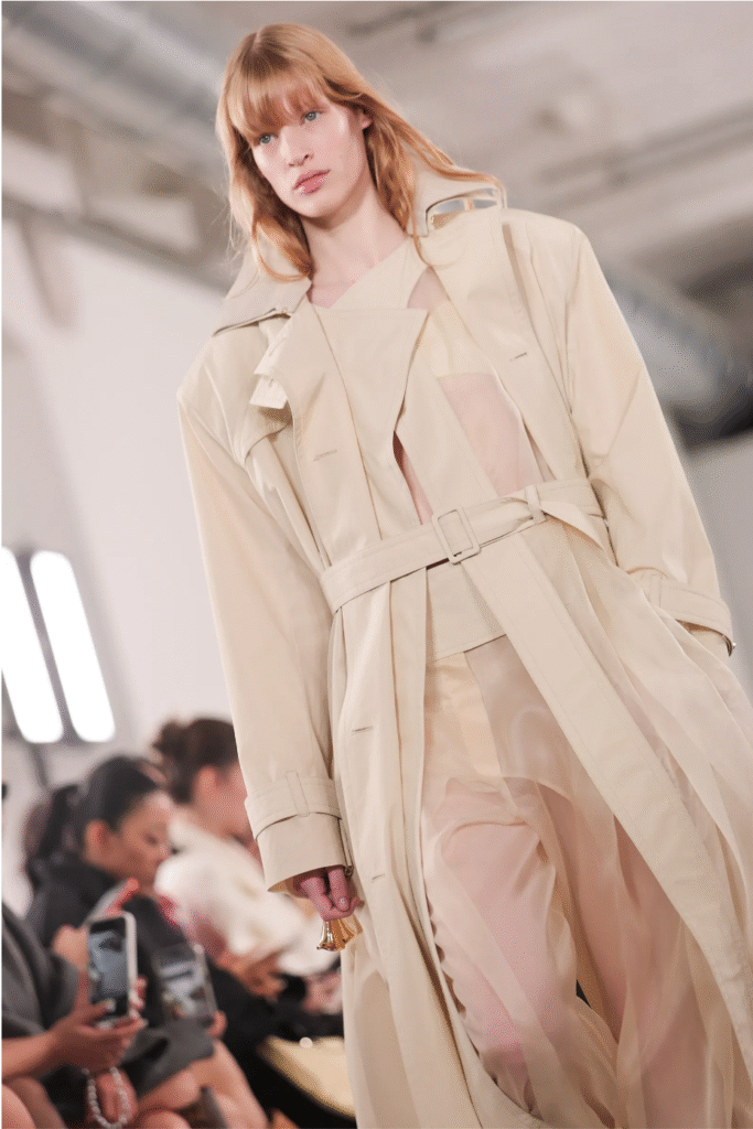 This collection emphasizes versatility and adaptability, guiding people to find inner ease and release in an ever-changing environment. Loose-fitting gauze trousers, sleeveless trench dresses with practical pockets, and leather jackets with adjustable straps meet the ever-changing needs of daily life. Focusing on enduring beauty and functionality, the designers retain essential sensual details and enhance visual tension through the contrast of opaque and transparent materials.